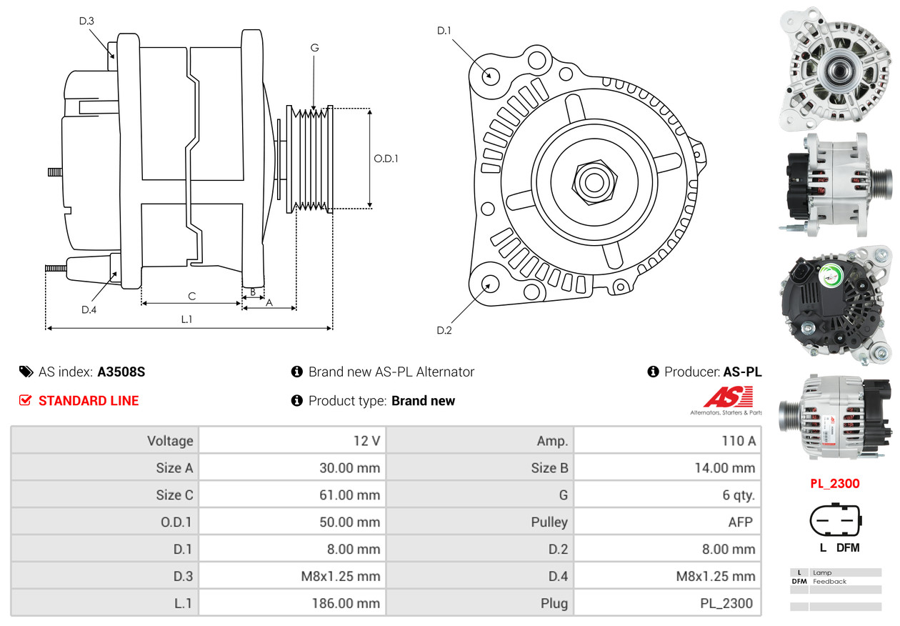 AS-PL Stator, Generator AS5019 Universal 12V 110A