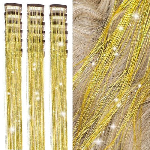 Kit di fermagli per capelli, confezione da 18 fermagli per capelli con clip da 19,6 pollici, extension per capelli con fermagli glitterati, resistenti al calore, fermagli per capelli con clip,