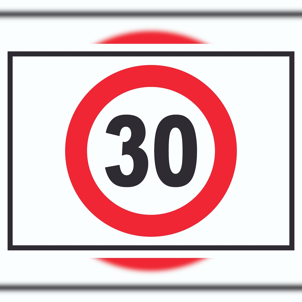 Tempo 30 km/h Geschwindigkeitsbegrenzung Schild Symbol A5 Rückseite selbstklebend