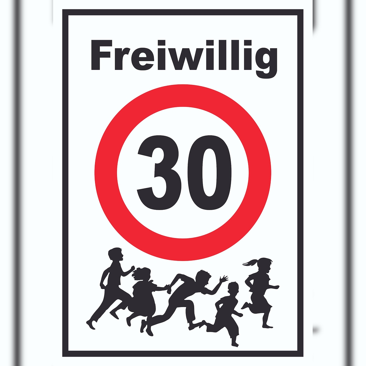 Freiwillig 30 Schild Spielende Kinder A1 Rückseite selbstklebend