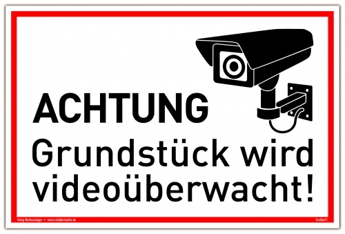Schild Achtung Grundstück wird videoüberwacht! weiß | stabiles Alu Schild mit UV-Schutz 30 x 20 cm