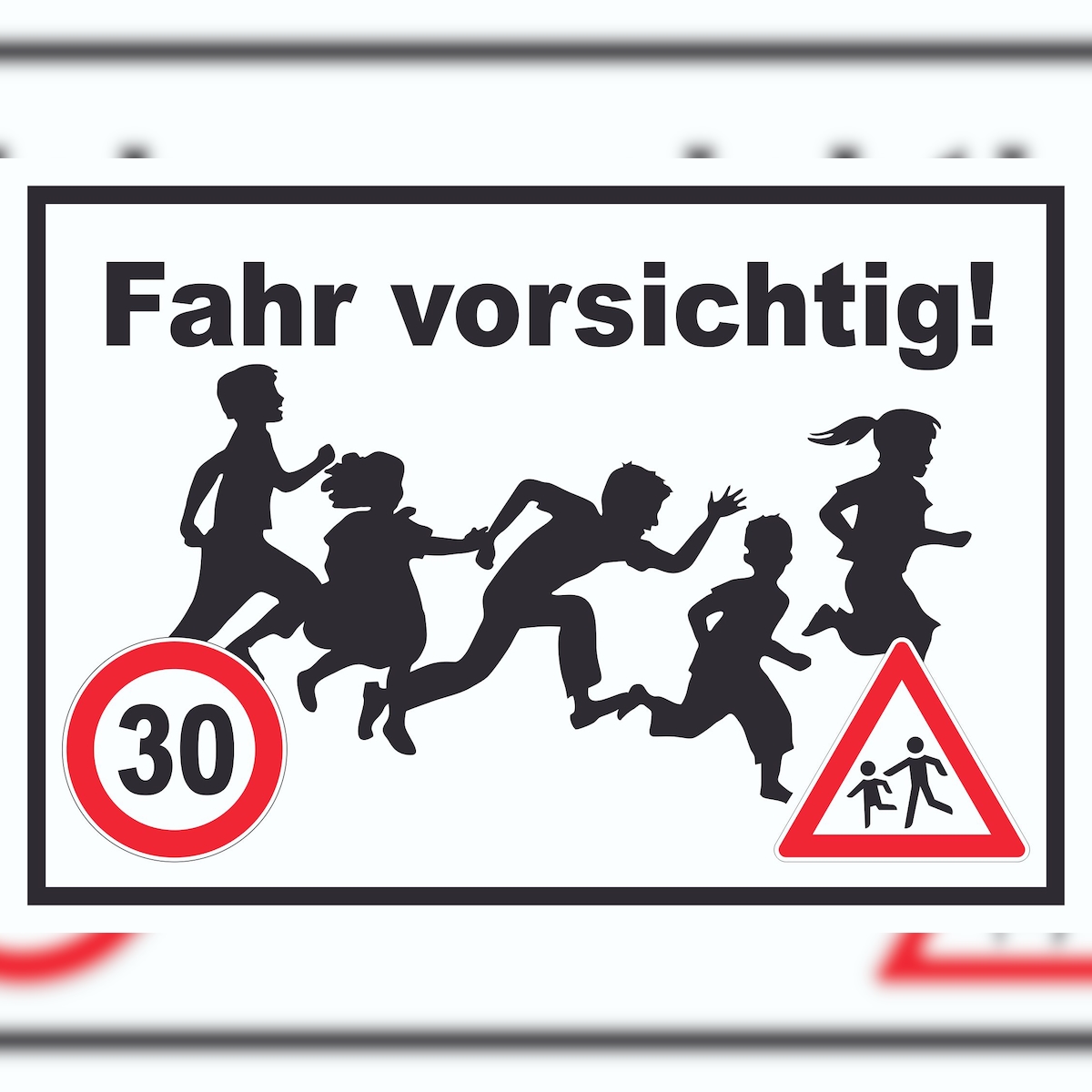 Fahr vorsichtig Schild 30 km/h Schild A3 Rückseite selbstklebend