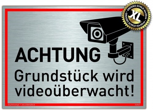Großes Schild Achtung Grundstück wird videoüberwacht! Silber | stabiles Alu Schild mit UV-Schutz 42 x 30 cm