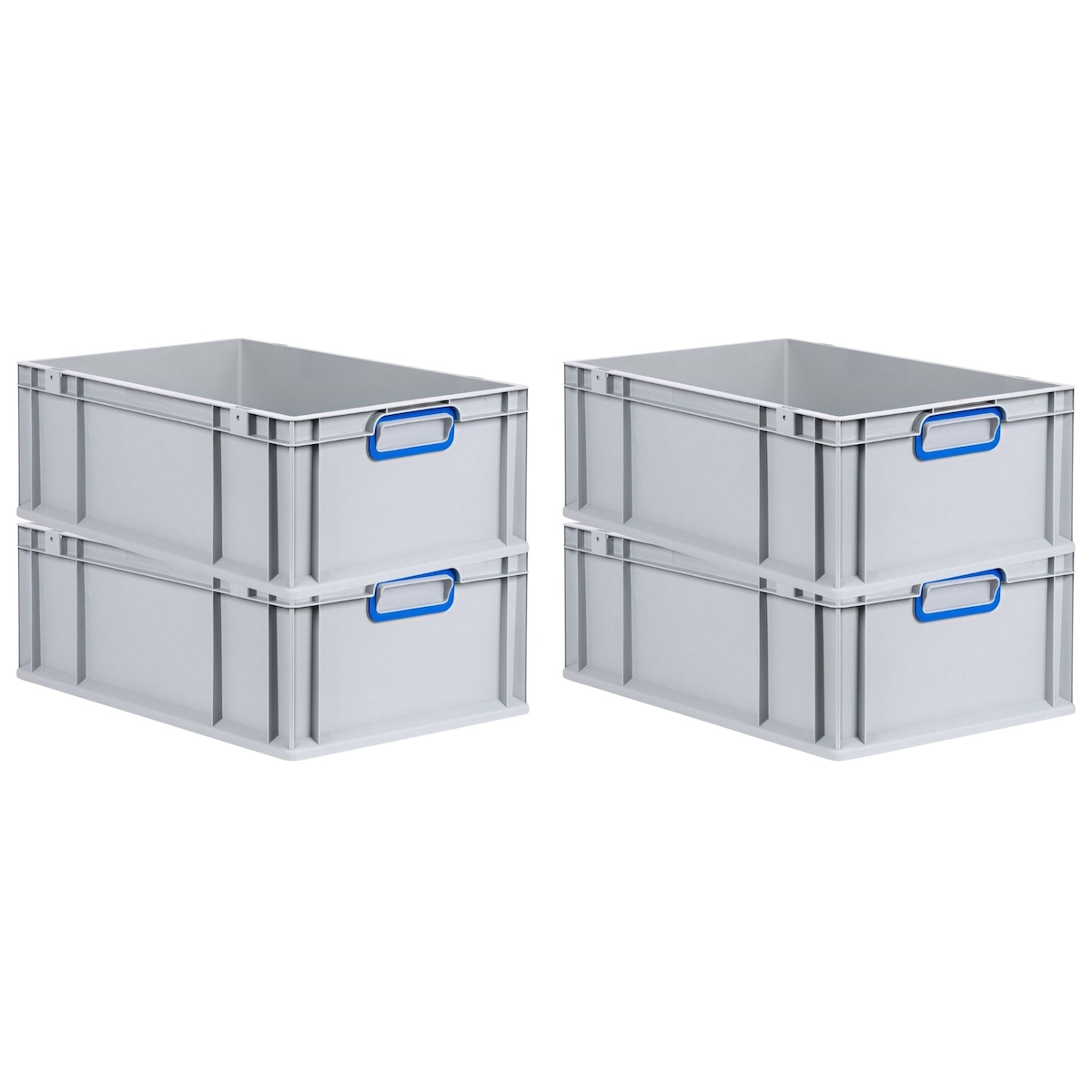 PROREGAL 4x Eurobox NextGen Grip | HxBxT 22x40x60cm | 44 Liter | Griffe geschlossen | Verstärkter Boden | Eurobehälter