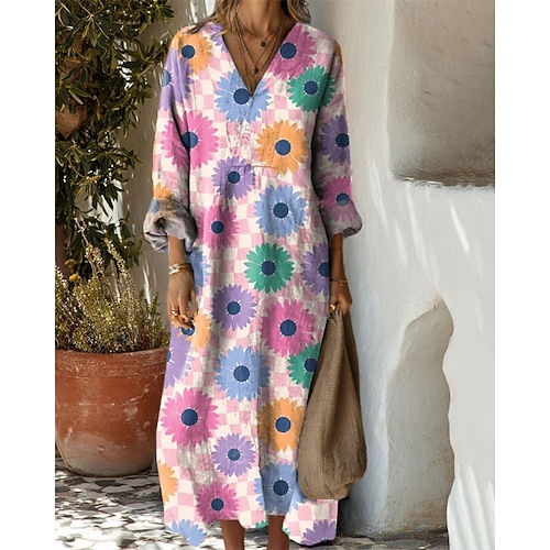 Per donna Abito Lungo Maxi Abito Vestito Casual Abito Floreale Elegante Moda Moderno Quotidiano All'aperto Spiaggia Vestibilità comoda Floreale Grafico Manica Lunga Scollo a V Blu Rosa brillante Rosa