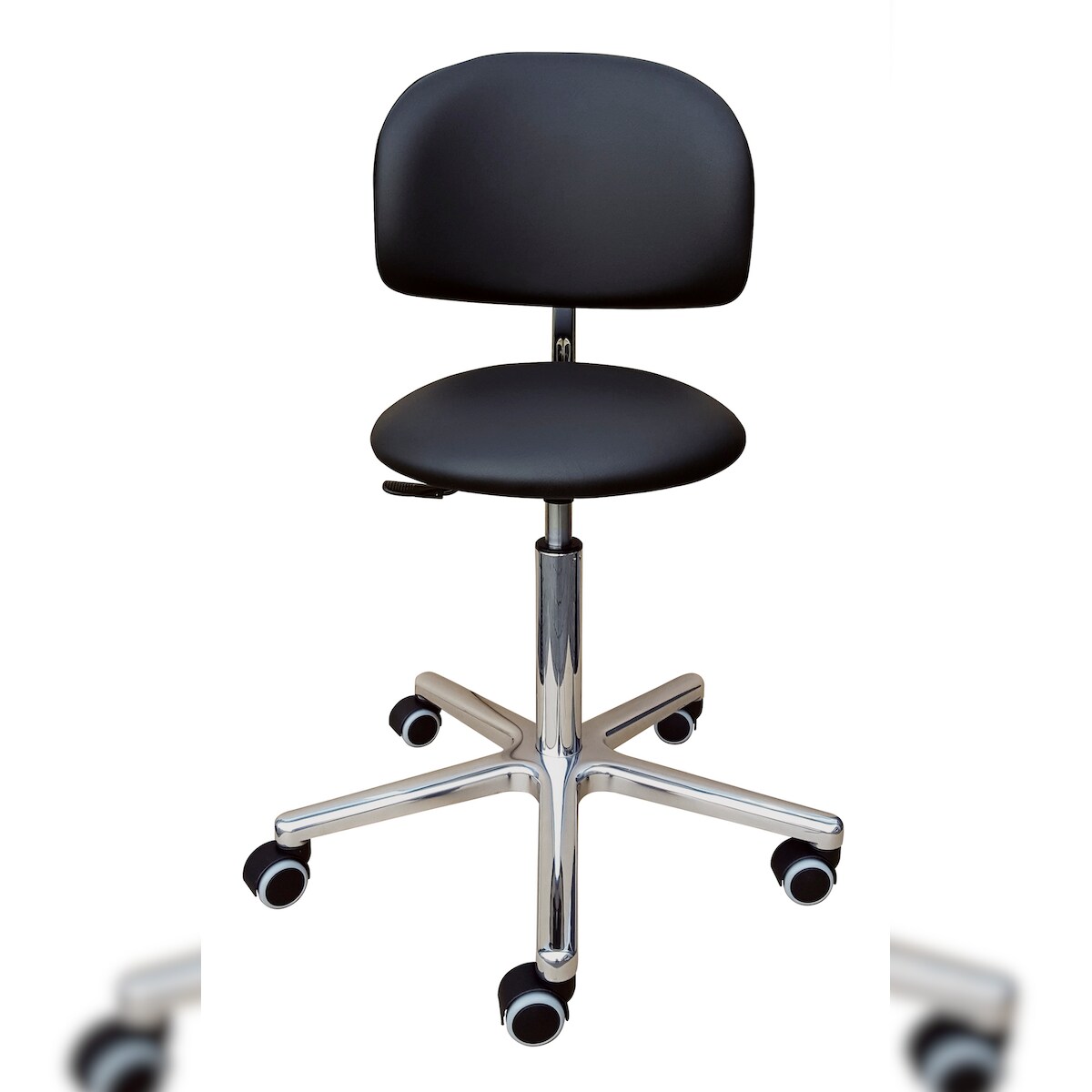 PROREGAL Antistatischer Drehhocker Indianapolis, ESD-Sitz, Sitzhöhe 52-70cm, Tragfähigkeit 110kg, Kunstleder-Sitz, Aluminium-Fußkreuz, Rollen, Schwarz