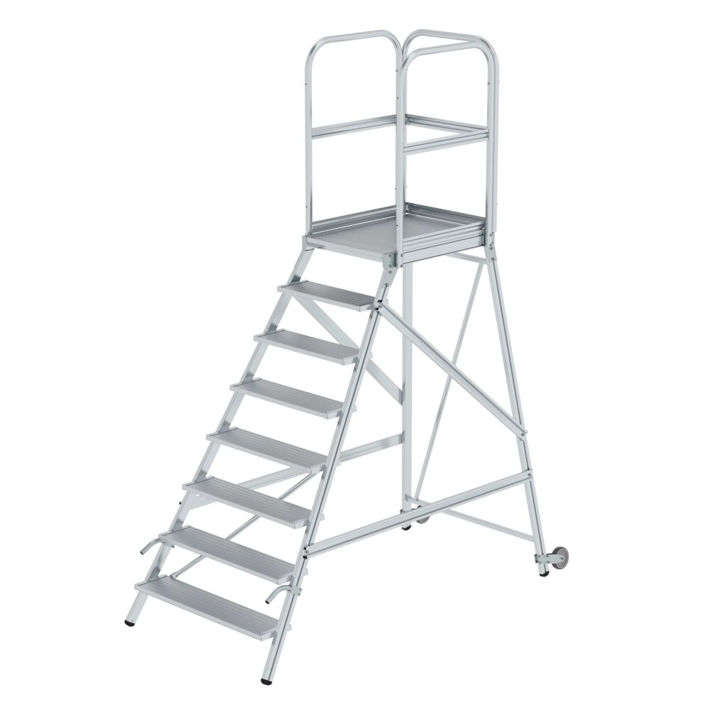 PROREGAL Plattformleiter mit Rollen und Griff | 8 Stufen | inkl. beidseitigem Handlauf | Aluminium | nivello Leiterschuhe