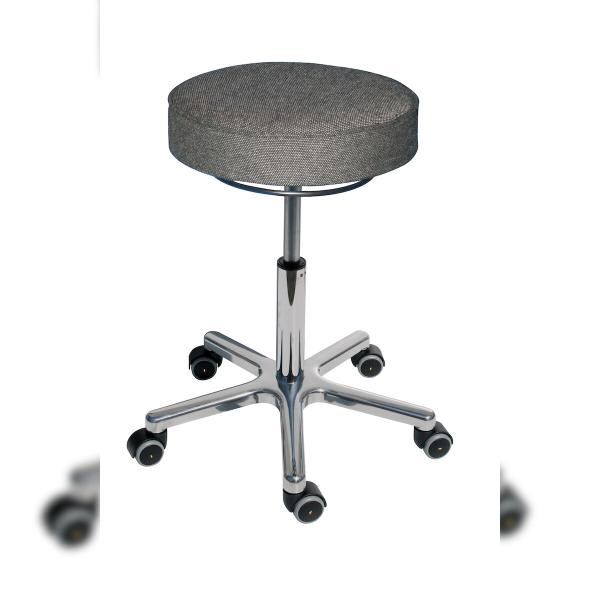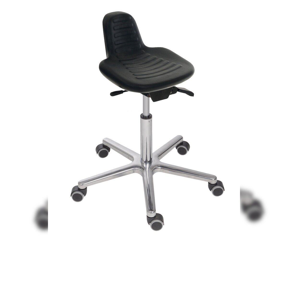 PROREGAL Antistatischer Drehhocker Indianapolis, ESD-Sitz, Sitzhöhe 44-62cm, Tragfähigkeit 110kg, Polyurethane-Sitz, Aluminium-Fußkreuz, Rollen