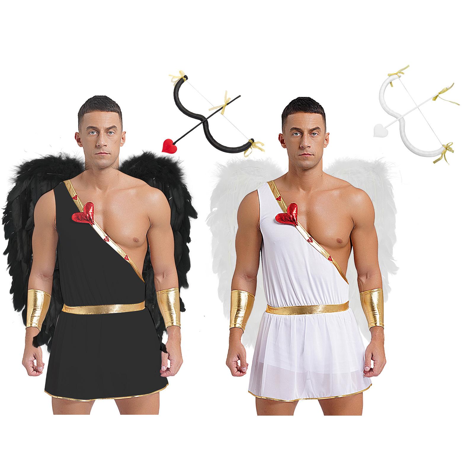 Ensemble Costume Cupidon Homme Combinaison Romper Manches Amovibles Ailes d'Ange en Plumes Coiffure Arc en Forme de M Flèche Cœur cm noir