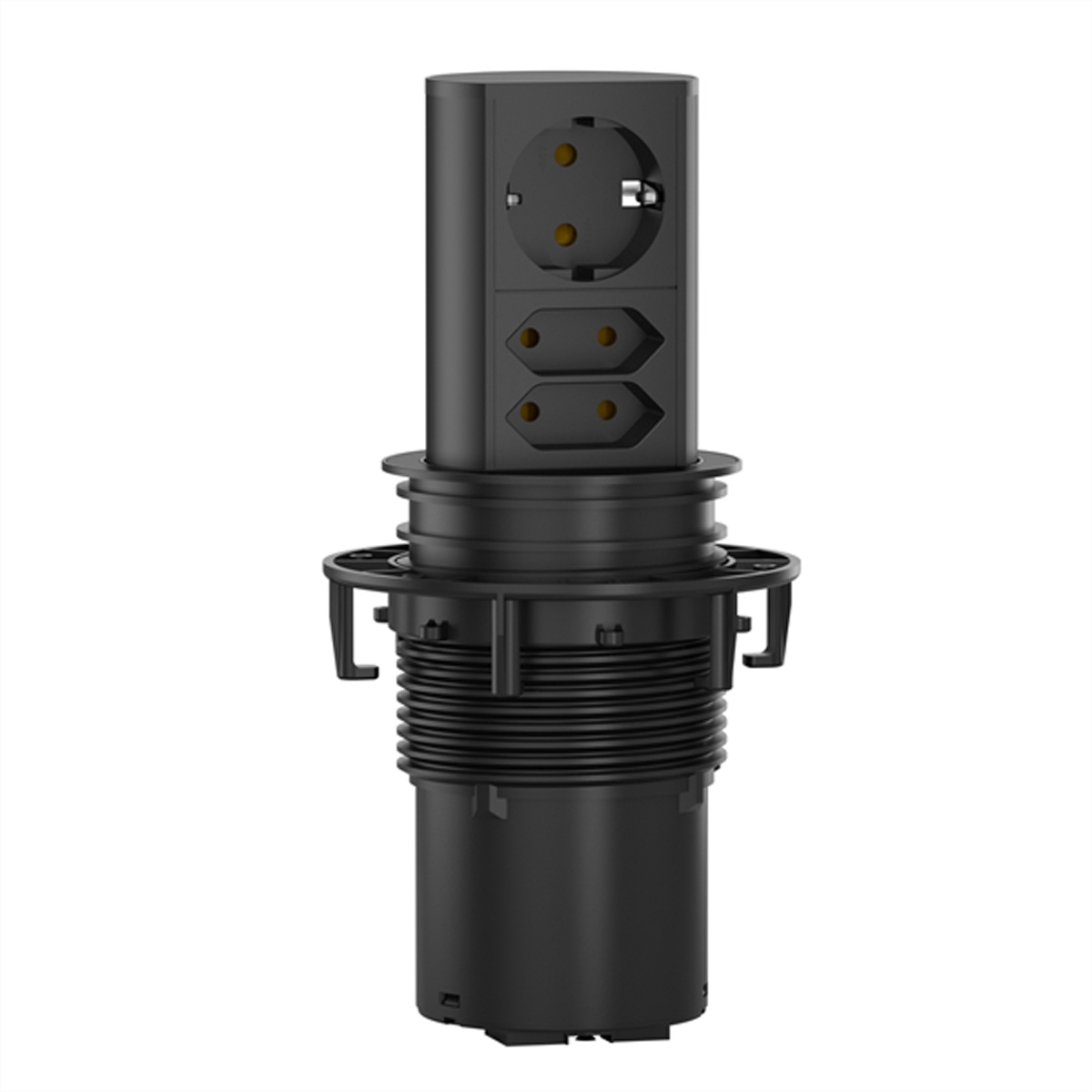 BACHMANN ELEVATOR 1x CEE 7/7 2x Euro, schwarz, 2 m