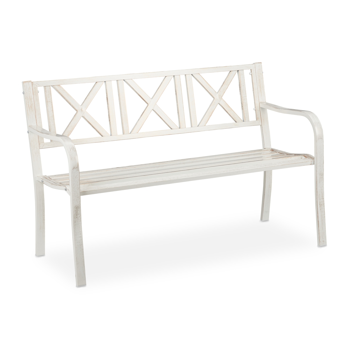 Relaxdays Gartenbank, 2 Sitzer, Terrasse, Balkon, Stahl, stabile Garten Sitzbank, HxBxT: 80,5 x 127 x 63 cm, weiß-bronze