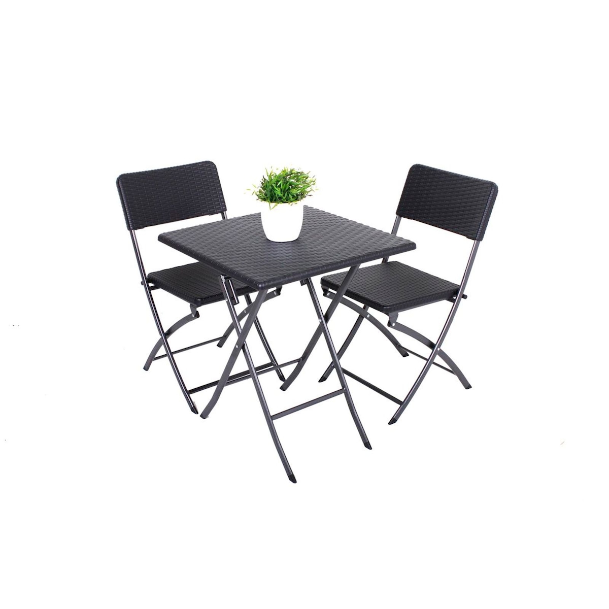 Gravidus 3-tlg. Balkon-Set Balkongruppe Tisch Stuhl klappbar Rattan-Optik