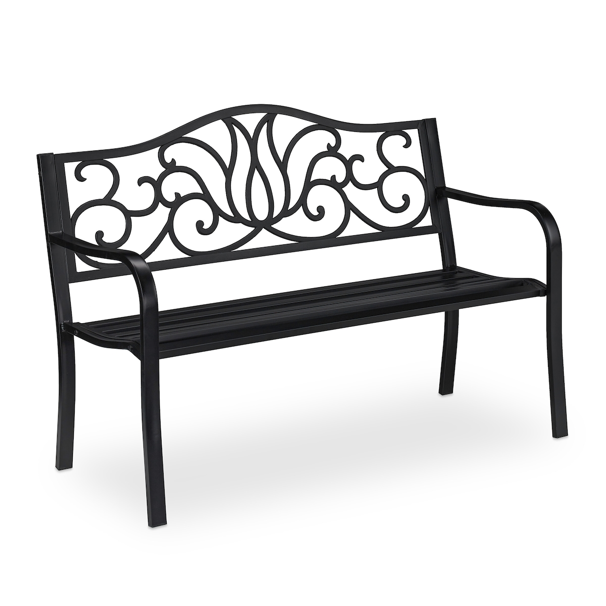Relaxdays Gartenbank, 2 Sitzer, Terrasse, Balkon, Stahl, stabile Garten Sitzbank, HxBxT: 80,5 x 127 x 63 cm, schwarz