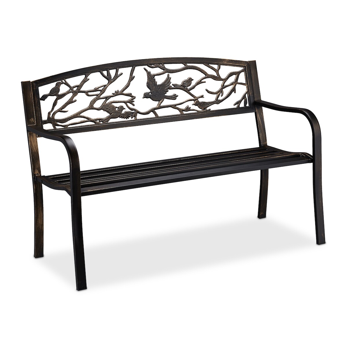 Relaxdays Gartenbank, Vögel Muster, 2-Sitzer, Vintage, Garten & Balkon, Stahl, Sitzbank, 87x127x57 cm, schwarz/bronze