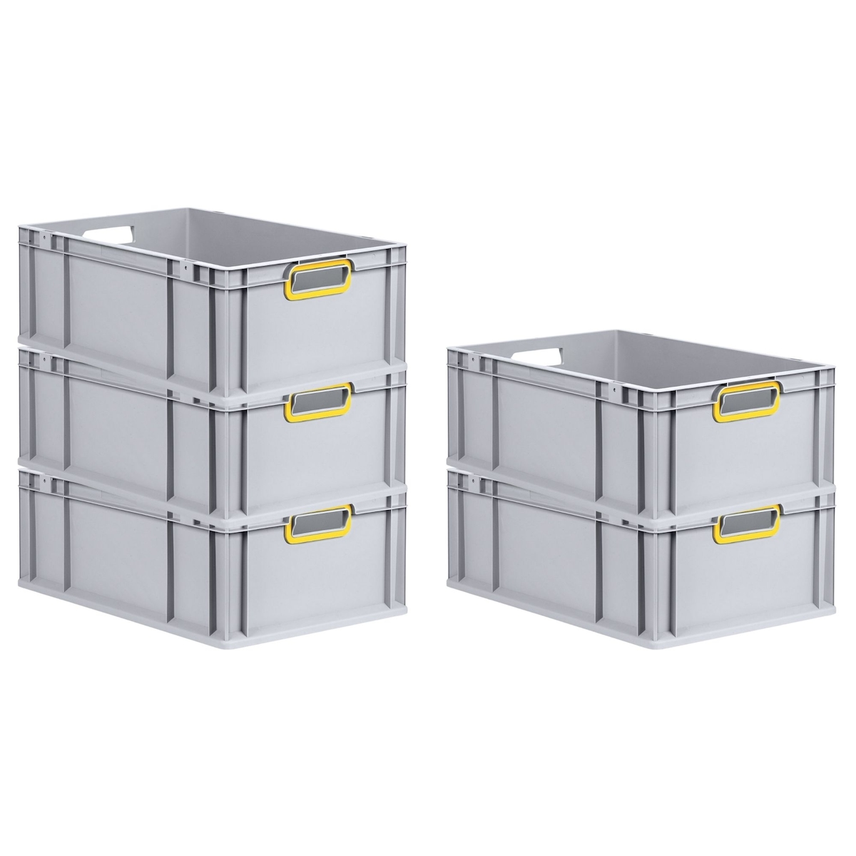 PROREGAL 5x Eurobox NextGen Color | HxBxT 22x40x60cm | 44 Liter | Griffe gelb offen | Verstärkter Boden | Eurobehälter