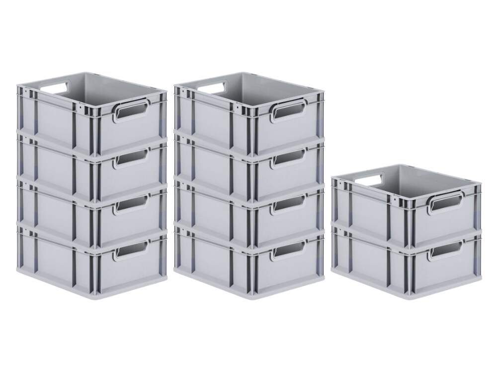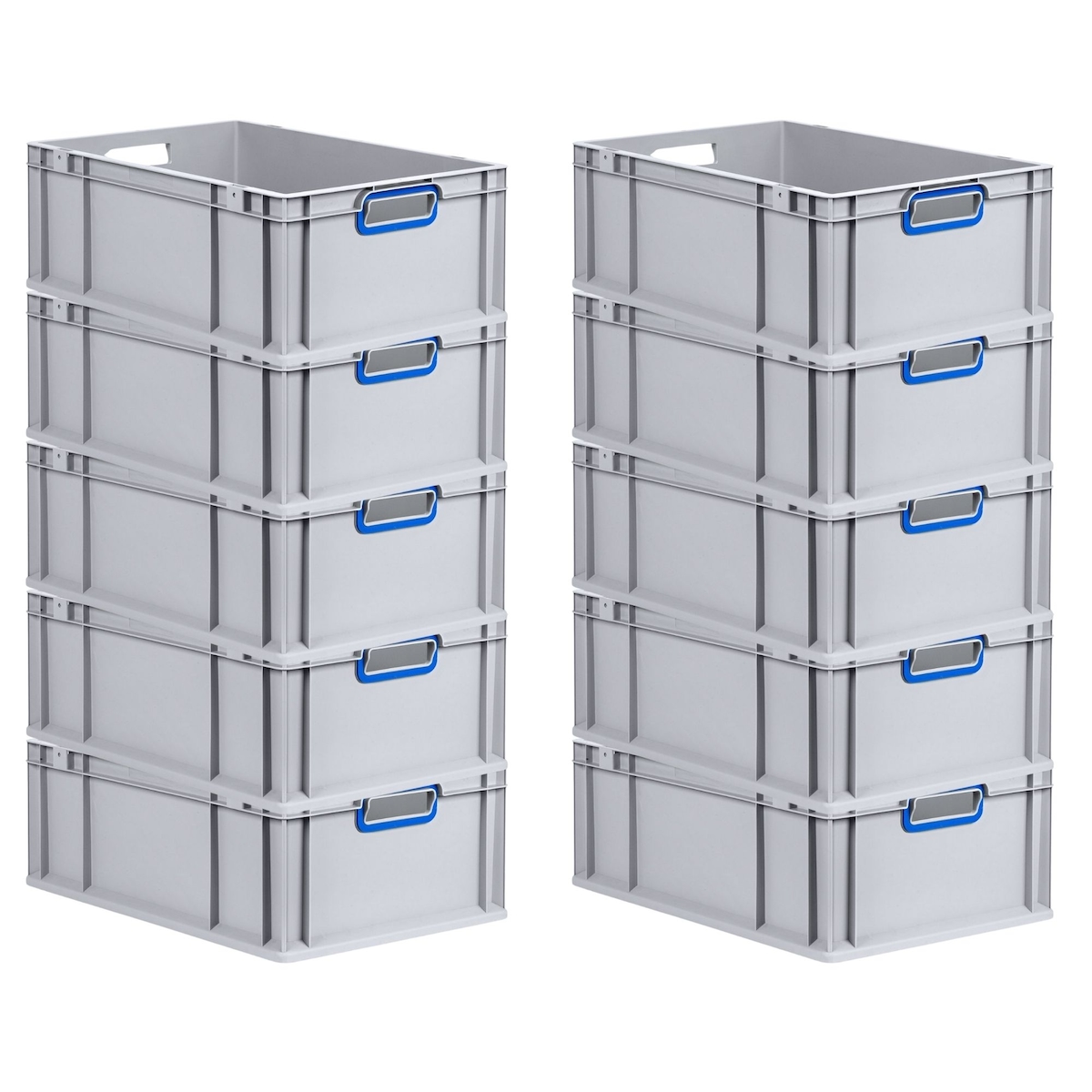 PROREGAL 10x Eurobox NextGen Grip | HxBxT 17x30x40cm | 16 Liter | Griffe offen | Glatter Boden | Eurobehälter