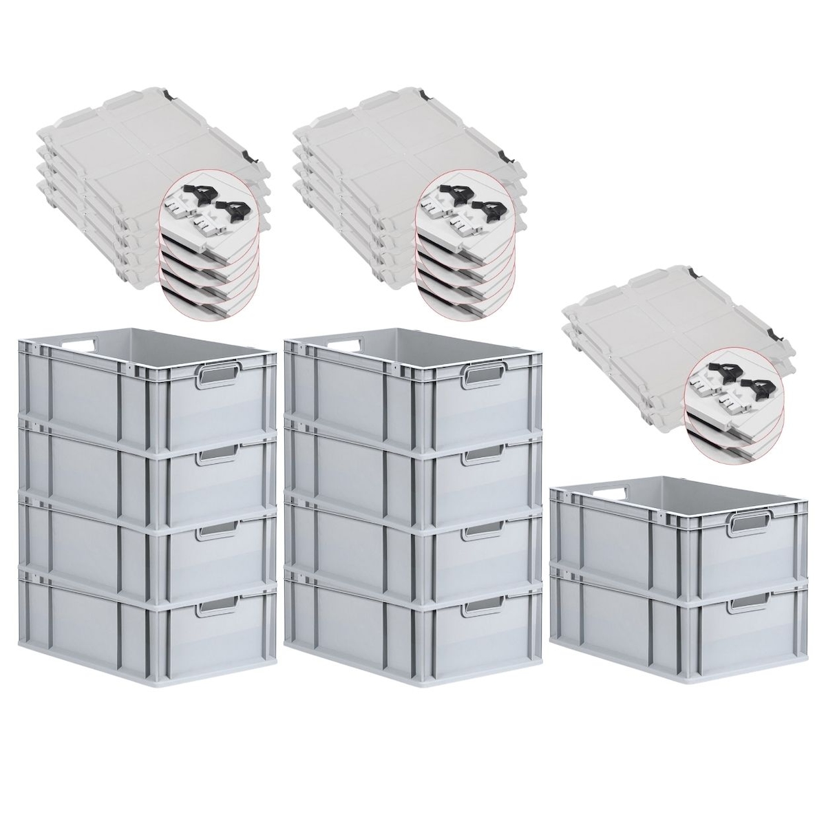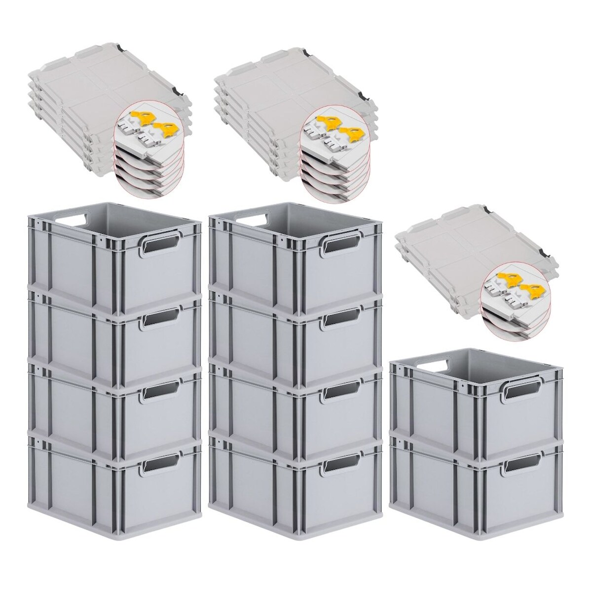 PROREGAL 10x Eurobox NextGen Grip mit Scharnierdeckel & schwarzen Verschlüssen | HxBxT 22x40x60cm | 44 Liter | Griffe offen | Verstärkter Boden