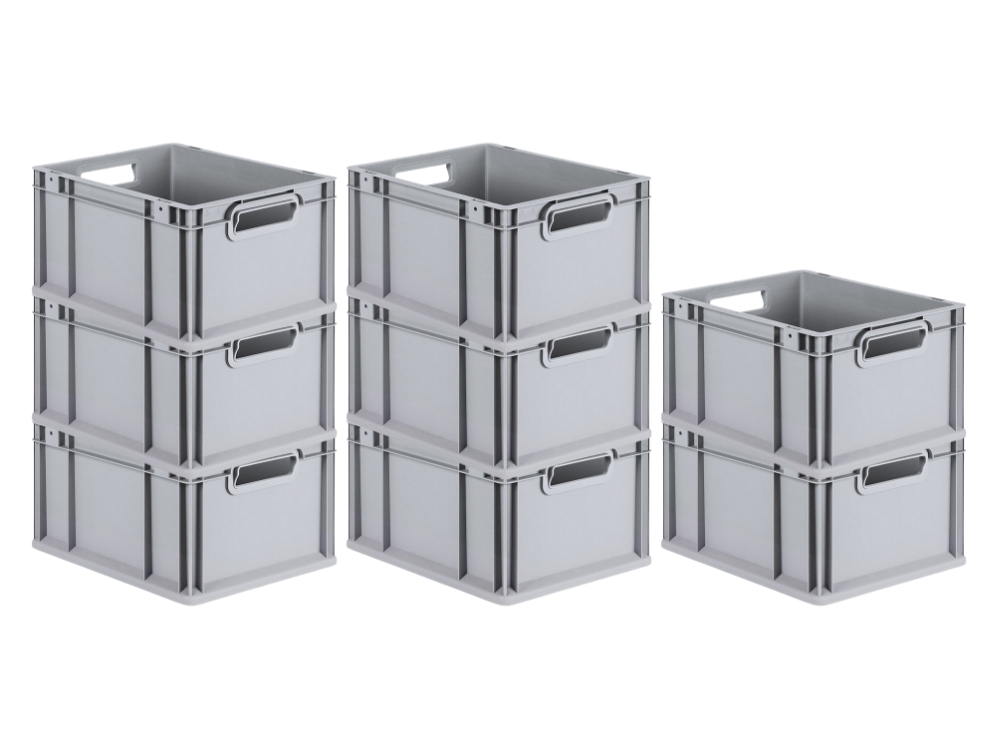 PROREGAL 8x Eurobox NextGen Grip | HxBxT 22x30x40cm | 20 Liter | Griffe offen | Glatter Boden | Eurobehälter