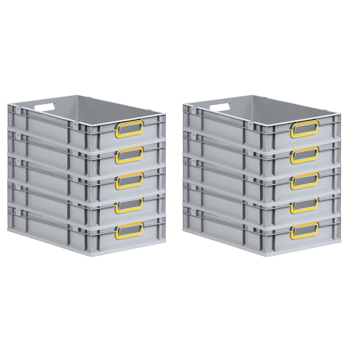 PROREGAL 10x Eurobox NextGen Color | HxBxT 12x40x60cm | 23 Liter | Griffe gelb offen | Glatter Boden | Eurobehälter