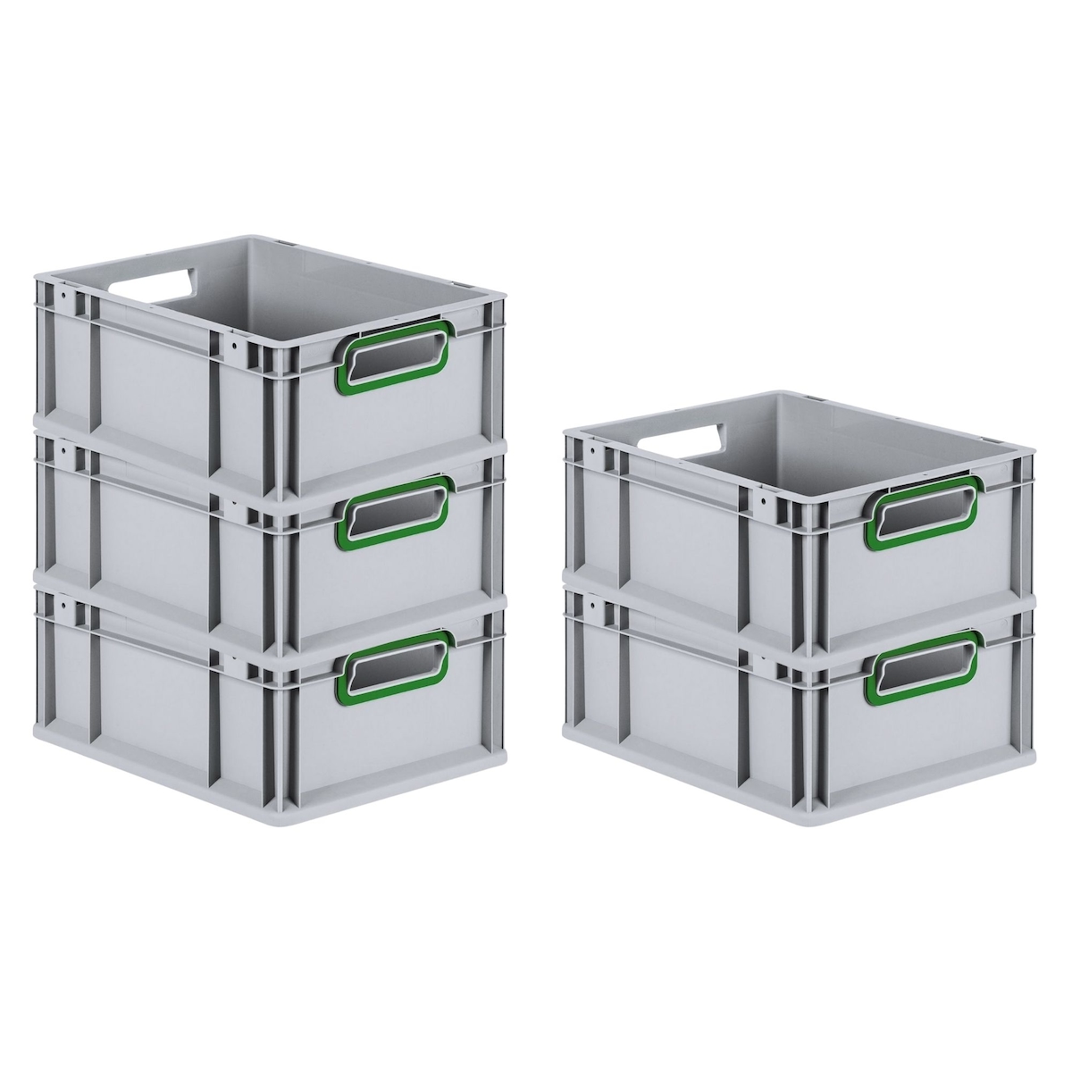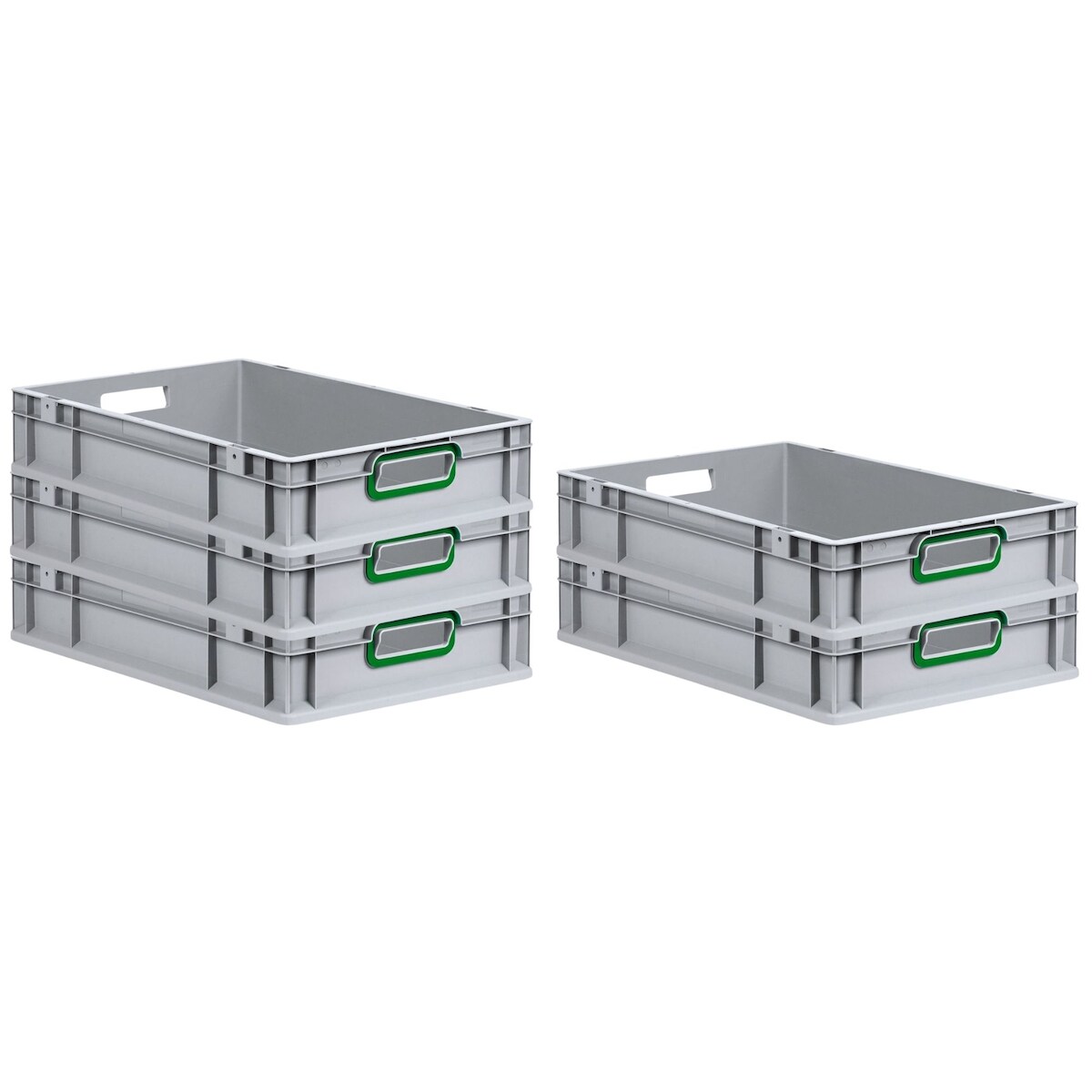 PROREGAL 5x Eurobox NextGen Color | HxBxT 17x40x60cm | 34 Liter | Griffe grün offen | Glatter Boden | Eurobehälter