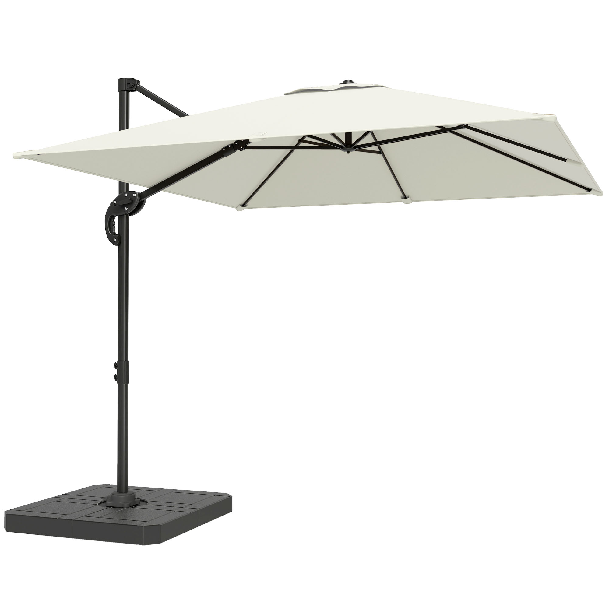 Outsunny 2.4 x 2.4m Cantilever Parasol with Umbrella Weights, UPF50+ Offset Outdoor Umbrella w/ Easy Tilt Adjustment, Cream White