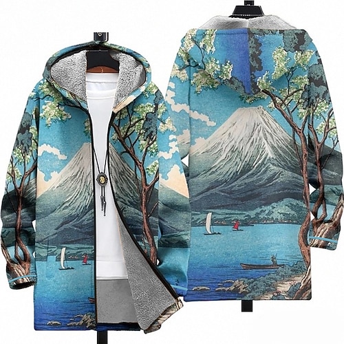Per uomo Paesaggio Cappotto Invernale Giacca in Pile Cappotto Calore Termico Confortevole Casual Abbigliamento quotidiano Cerniera Tasca Stampa 3D Autunno Inverno Con Cappuccio Manica Lunga Rosso