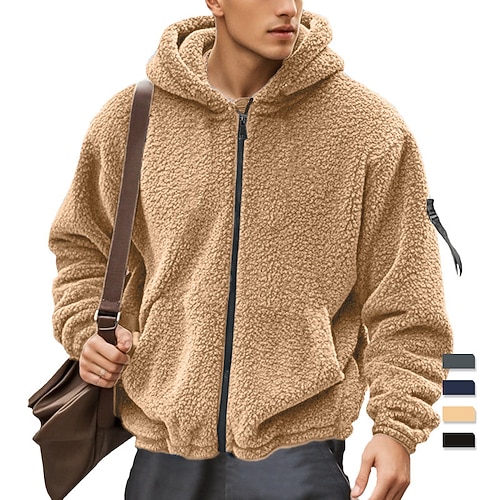 Per uomo Cappotto Invernale Cappotto Teddy Giacca Casual All'aperto Casuale Calore Termico Tasca Cerniera completa Autunno Inverno Semplice Streetwear Quotidiano Con Cappuccio Regolare Nero Blu