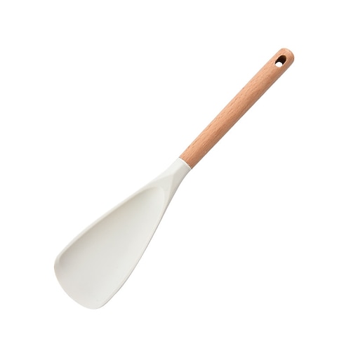 cucchiaio spatola multifunzionale con manico ergonomico in legno - utensile da cucina antiaderente resistente e sicuro per cucinare, servire, girare pancake, mescolare zuppe, mescolare pastelle - nero