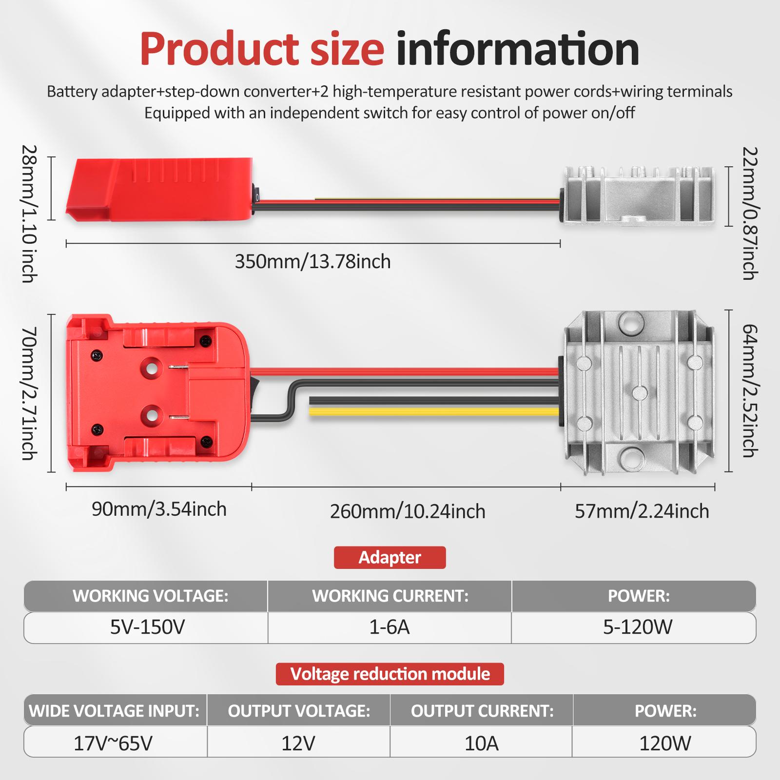 18V til 12V Step Down-omformer Kompatibel med Milwaukee M18 Batteriadapter DC 12V 10A 120W Buck-omformer Overladingsbeskyttelse