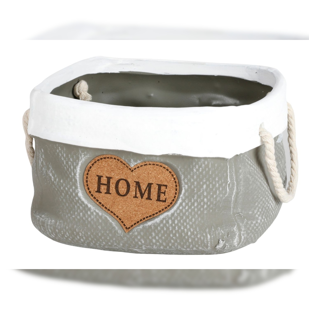 BURI Keramik-Übertopf 19x12cm grau Sackoptik Blumentopf Pflanzentopf Garten Deko Grau 19