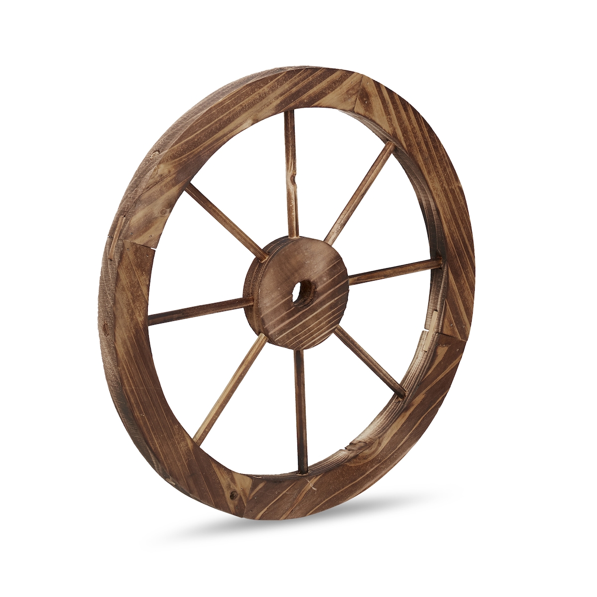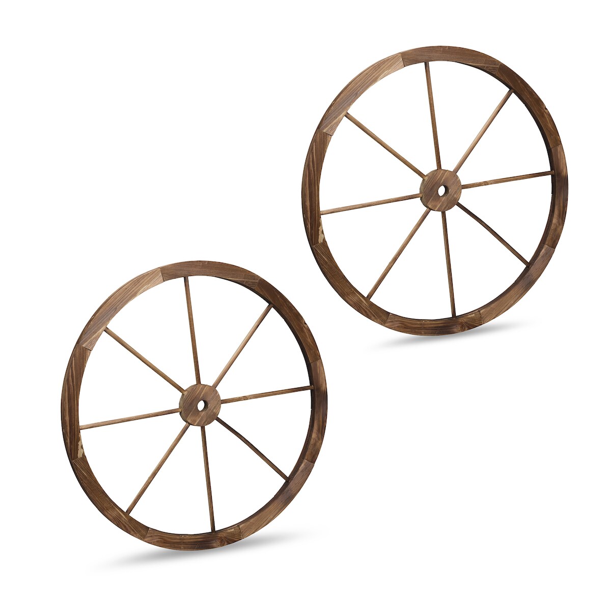Relaxdays Wagenrad aus Holz, 2er Set, Deko für Garten, Terrasse, Veranda, rustikales Speichenrad, Saloon, Western, braun
