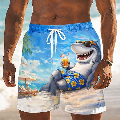 Per uomo Cartoni animati Ippopotamo Tartaruga di mare Costumi da bagno Pantaloncini da mare Pantaloncini da Surf Misura del girovita medio Divertente Camicia hawaiana Vacanza al Mare Tasche Laterali