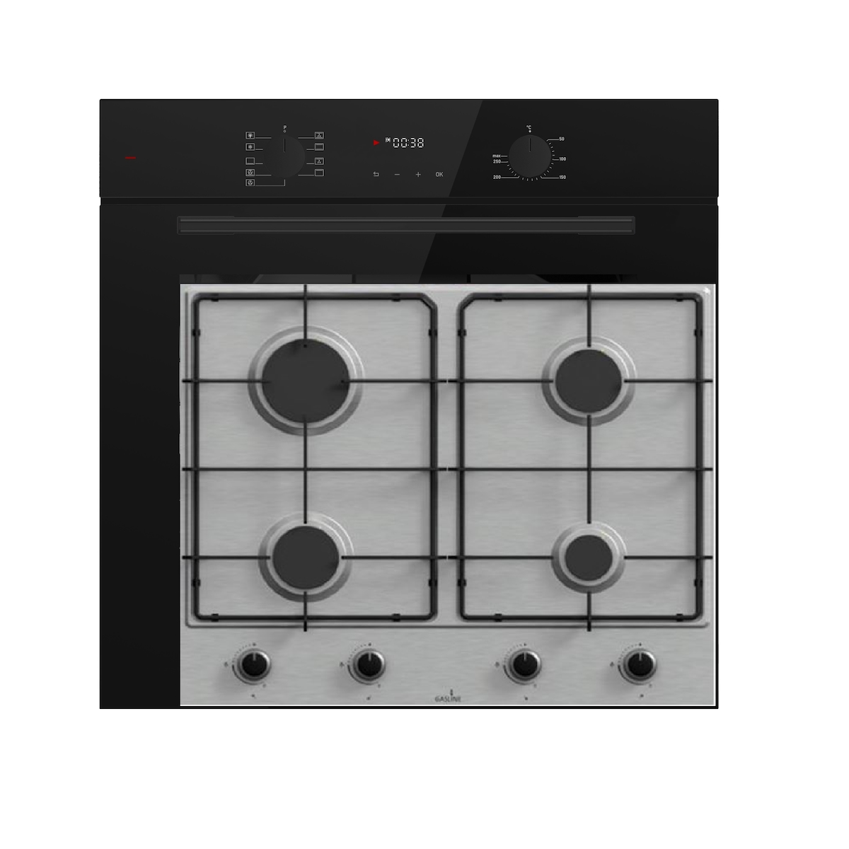 Böhme Einbauherdset mit Elektrobackofen HB60F78PPX + Gasline Gaskochfeld GAG60GLG 60cm Schwarz Glaskeramik mit 4 Brennern