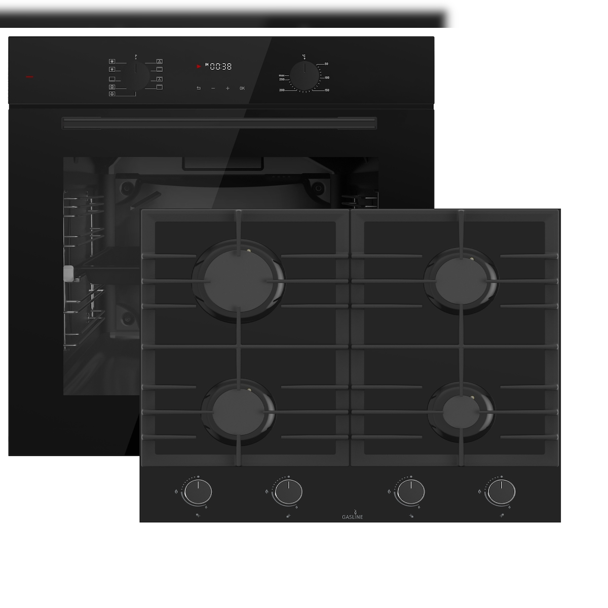 Böhme Einbauherdset mit Elektrobackofen HB60F78PPB +Gasline Gaskochfeld GAG60GLG 60cm Schwarz Glaskeramik mit 4 Brennern
