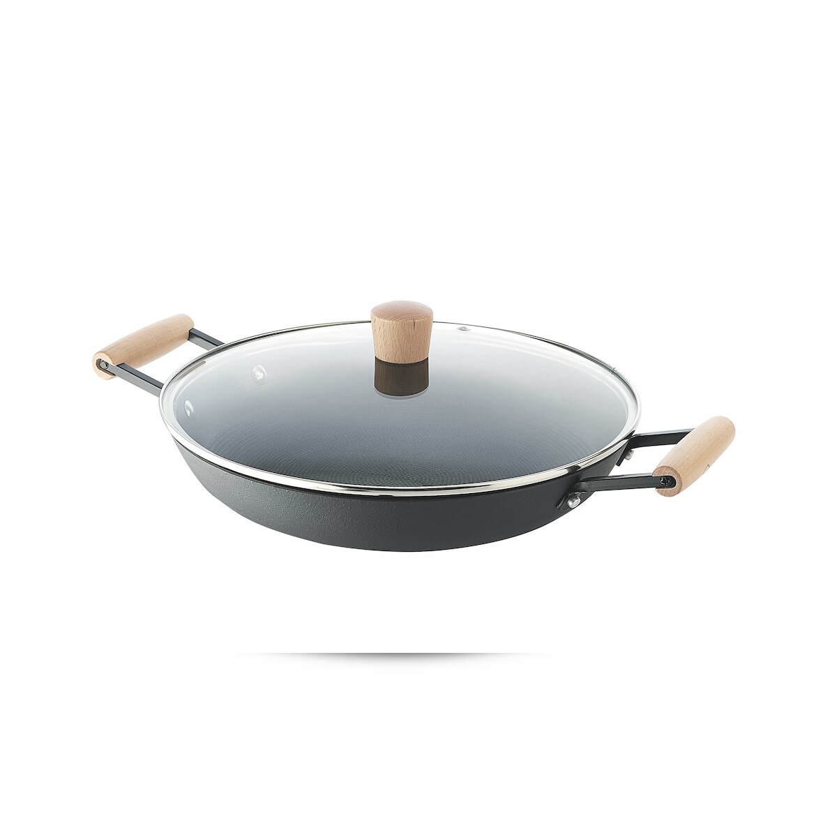 Rohe Germany Servierpfanne John, 30 cm , Eisenpfanne, mit Holzgriff, mit Glasdeckel