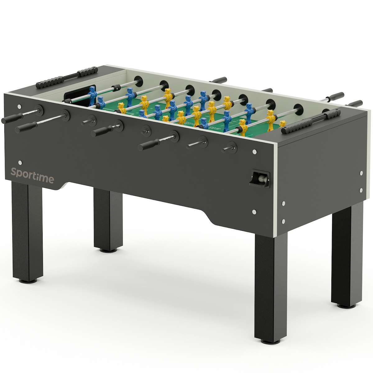 Sportime Tischkicker "Dragon Steel", Blue Guardian vs. Yellow Dragon, Spielfeld: Rasen-Grün, Platinum Grey