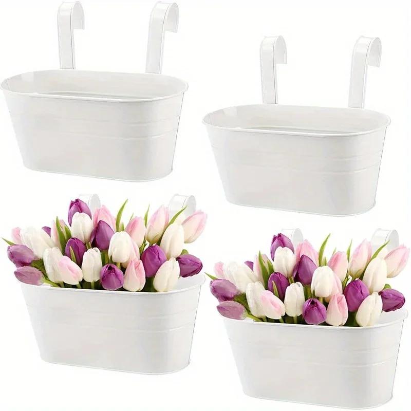 4 Pack Multipurpose Hanging Flower Pots Metal Iron Plant Pot Holders Large Fence Railing Balcony Garden Hanging Bucket Planters.