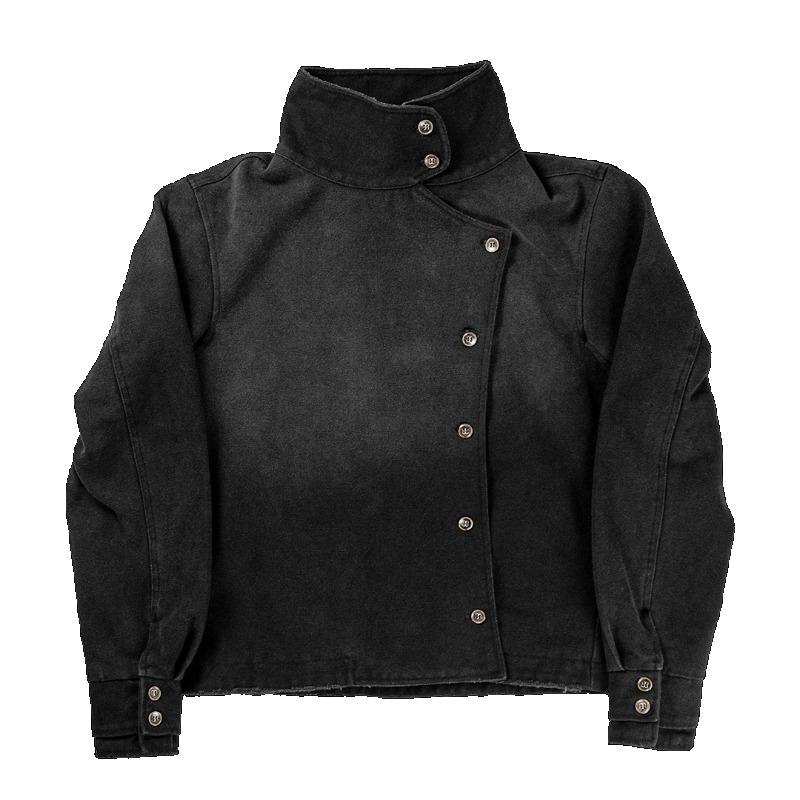 Y2k Fencing Jacket Vintage Wash Gradient Irregular Buttons Unisex Jacket Gothic Harajuku Streetwear Canvas Cotton Casual Jacket cm
