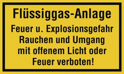 Schild Flüssiggas-Anlage Feuer und Explosionsgefahr..., Kunststoff, 250x150 mm