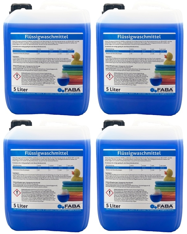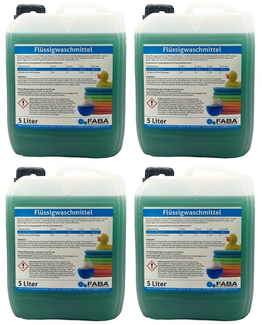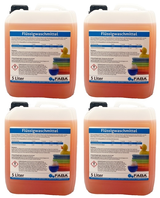 FABA Chemie Flüssigwaschmittel Konzentrat blau,rot,grün,orange 4 x 5 Liter