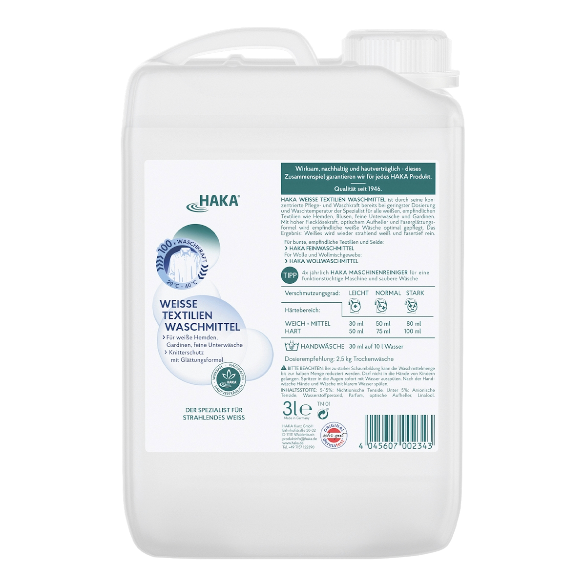 HAKA Weiße Textilien Waschmittel 3l Flüssigwaschmittel für weiße Wäsche