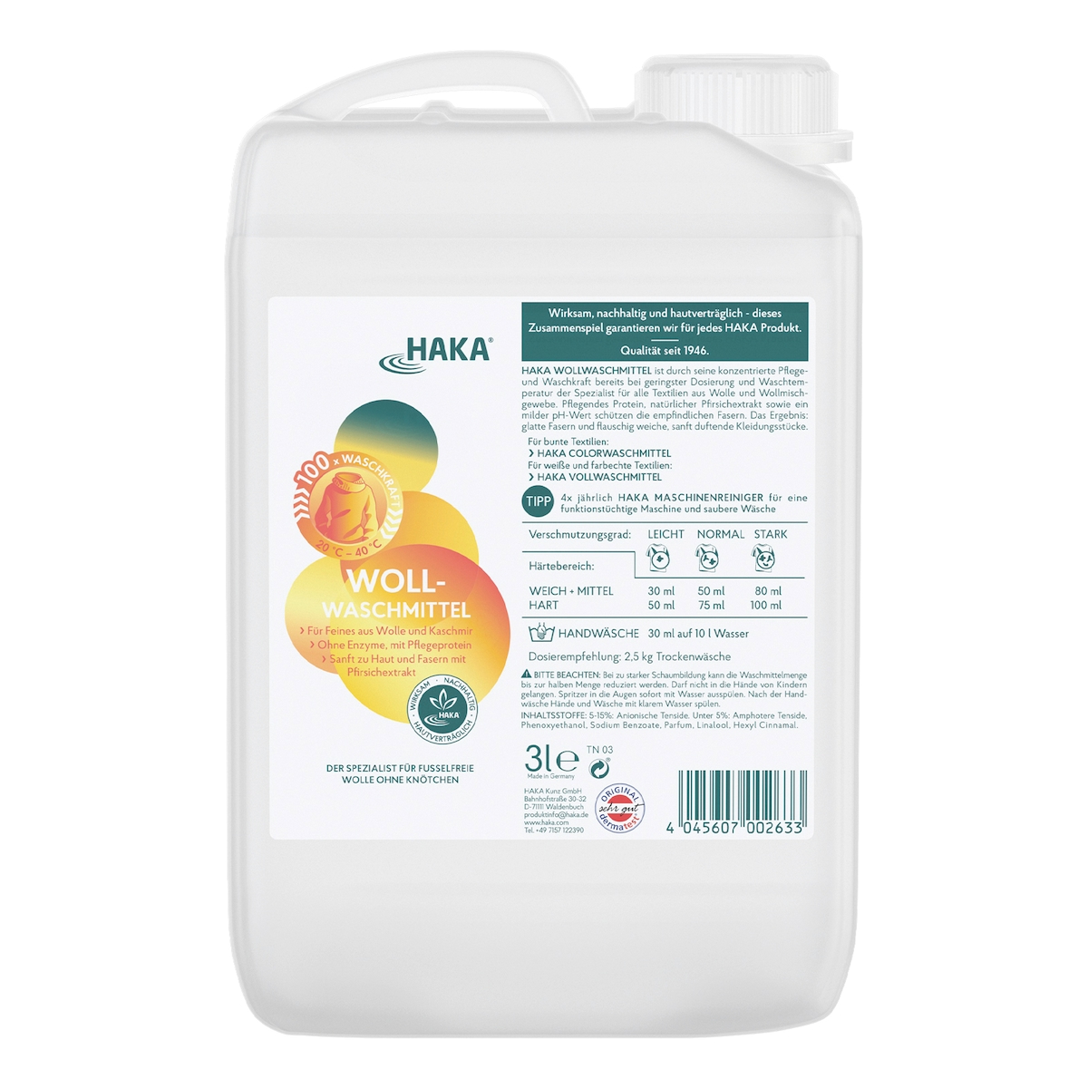 HAKA Wollwaschmittel 3l Flüssigwaschmittel Waschmittel Feinwaschmittel
