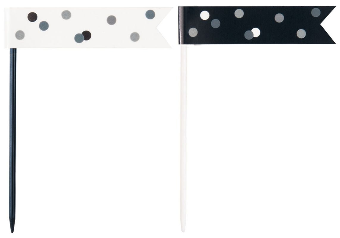 6 glitzer Flaggen Picker schwarz & silber