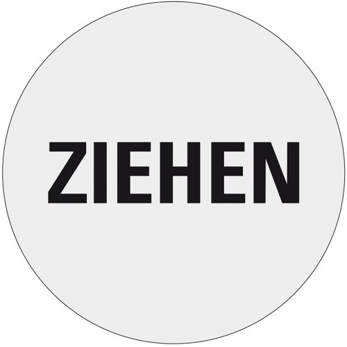 Aufkleber I Türhinweis Ziehen, silber/schwarz, Polyester-Folie, selbstklebend, Ø 100mm