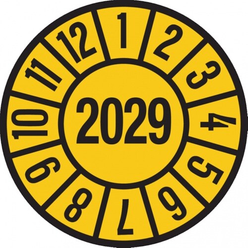 König Werbeanlagen Dreifke® Prüfplakette gelb/schwarz 2029 - 35 mm Folie selbstklebend