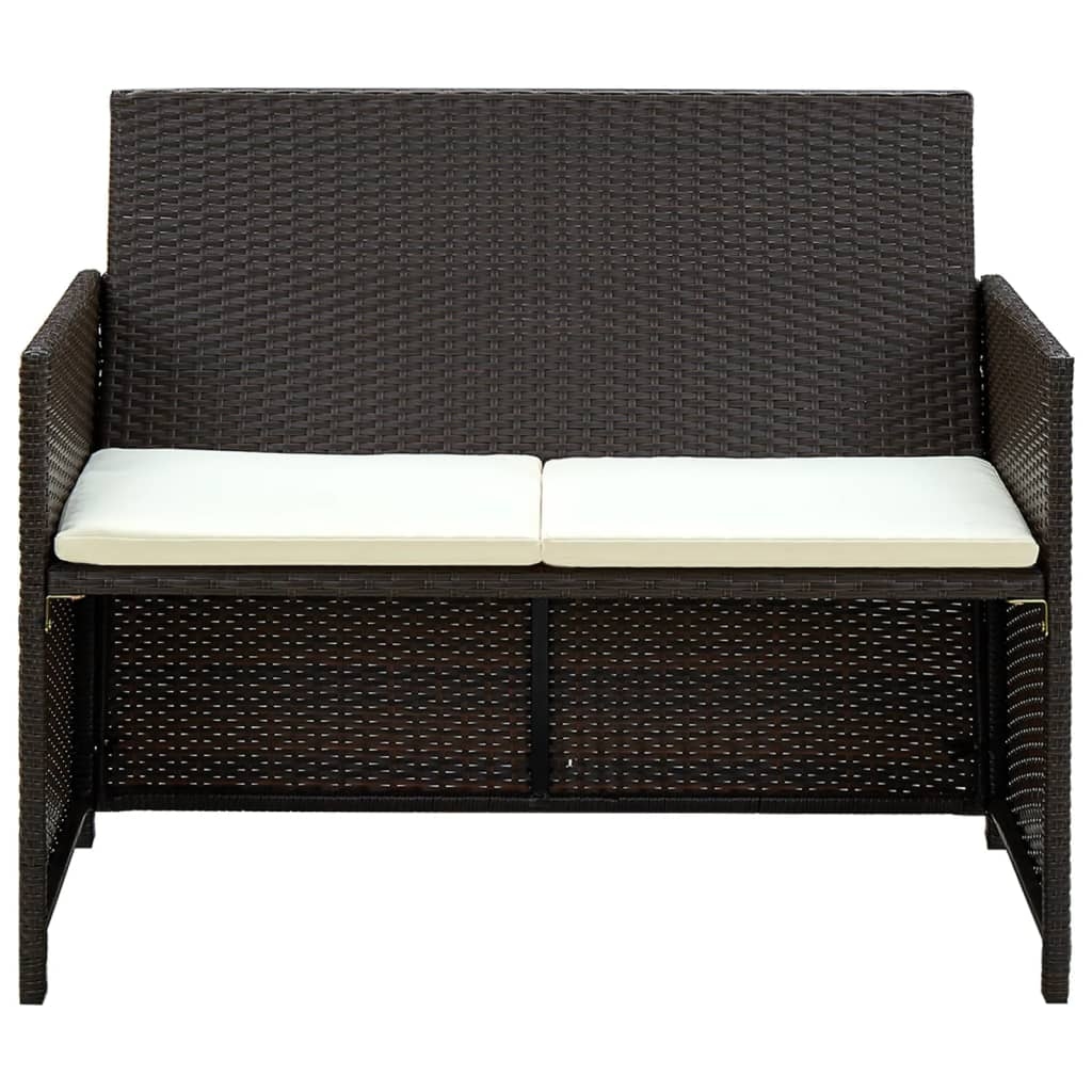 vidaXL 2-Sitzer-Gartensofa mit Polstern Braun Poly Rattan