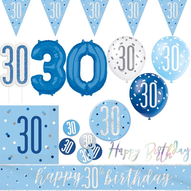 30. Geburtstag Partydeko blau Mann hellblau Geburtstagsparty Artikel Set volljährig Erwachsen