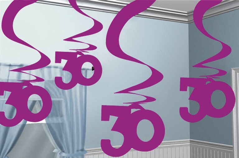 5 Swirl Girlanden 30. Geburtstag `Pink Shimmer`