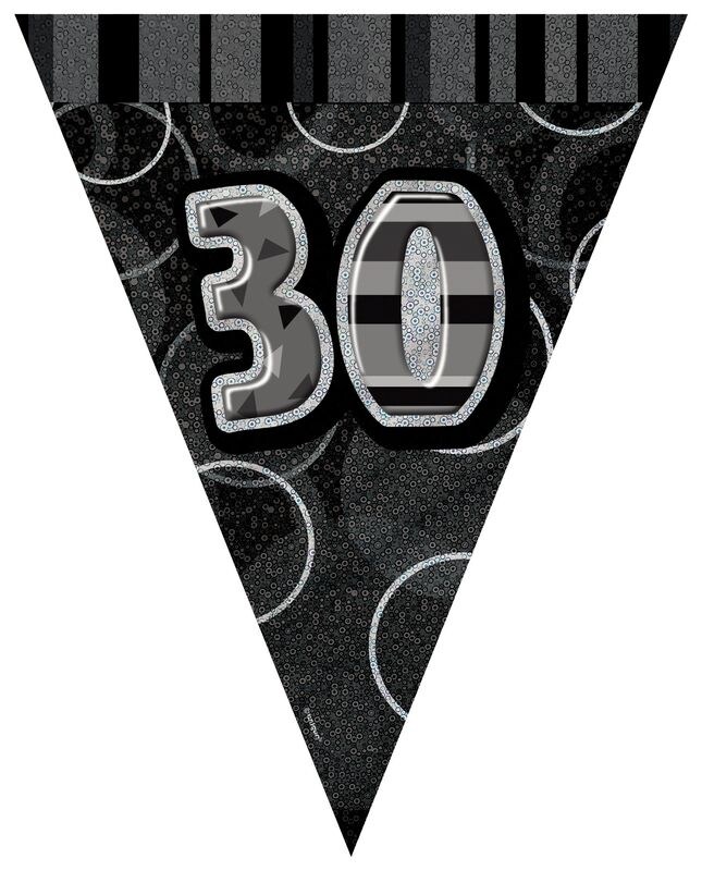 30. Geburtstag | Wimpelkette schwarz / silber