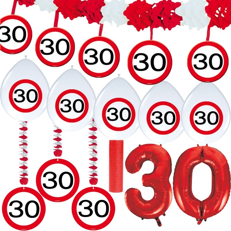 30. Geburtstag Verkehrsschild Party Deko Set rot weiß Mann Frau Partyset